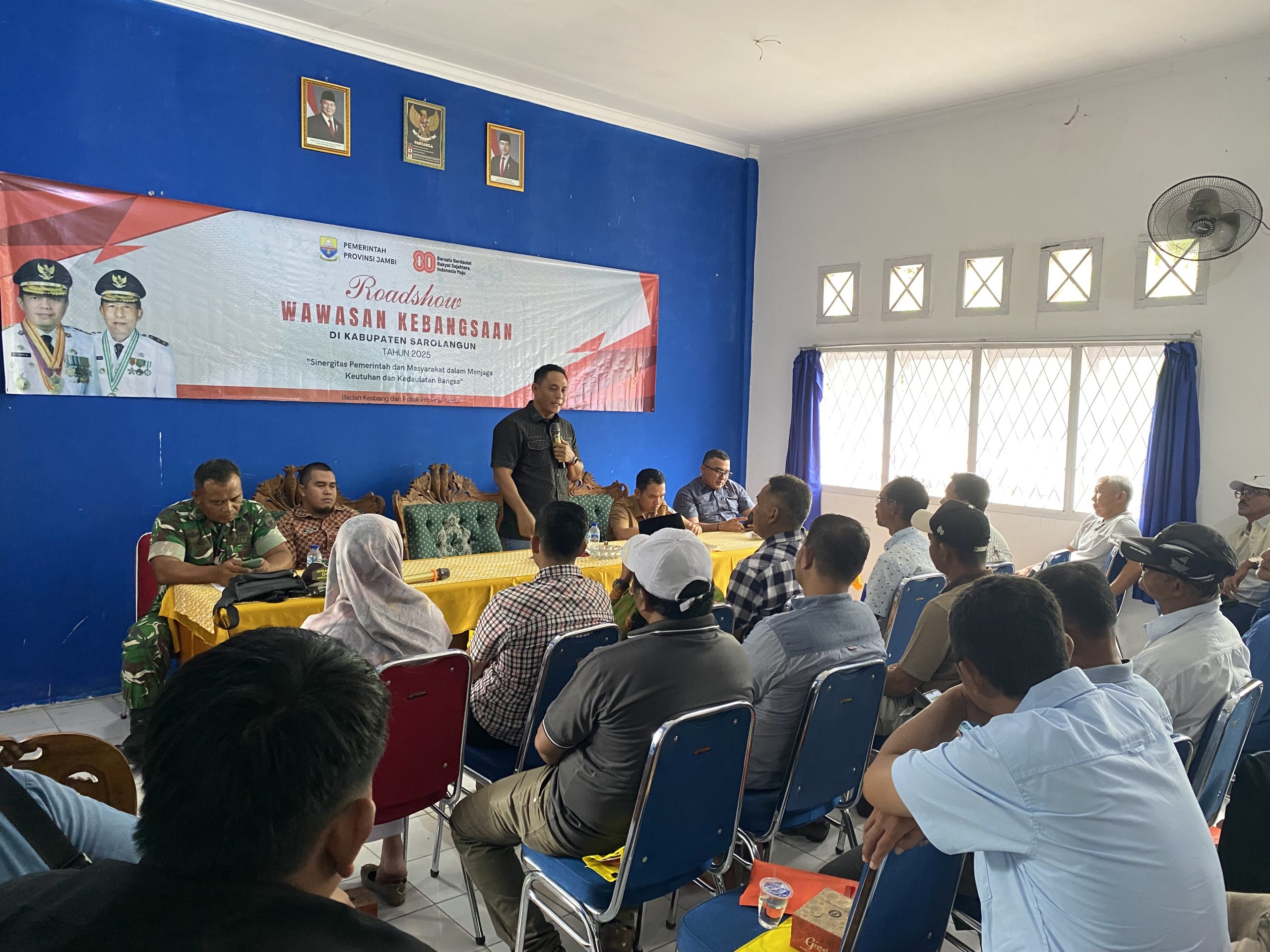 SAROLANGUN – Wakil Ketua ll DPRD Provinsi Jambi, Samsul Riduan menghadiri sosialisasi wawasan kebangsaan bersama sejumlah tokoh masyarakat di Kabupaten Sarolangun.